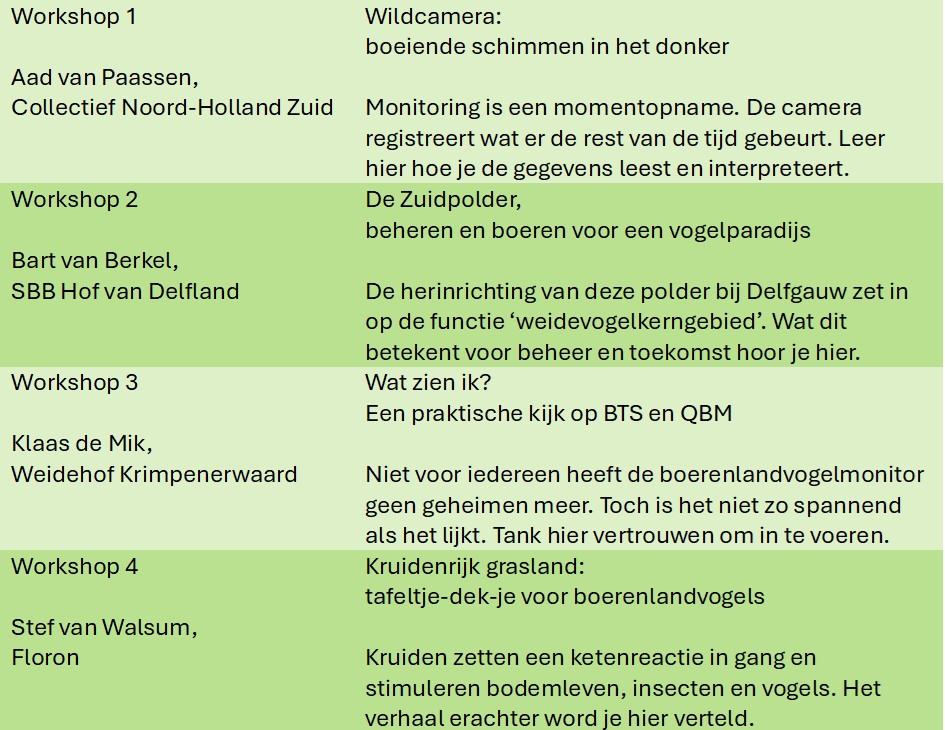 De Groene Motor voorbij met het programma voor de jaarlijkse Boerenlandvogelstartdag. Vier interessante onderwerpen en workshopleiders maken dat je deze dag vast niet wil missen: