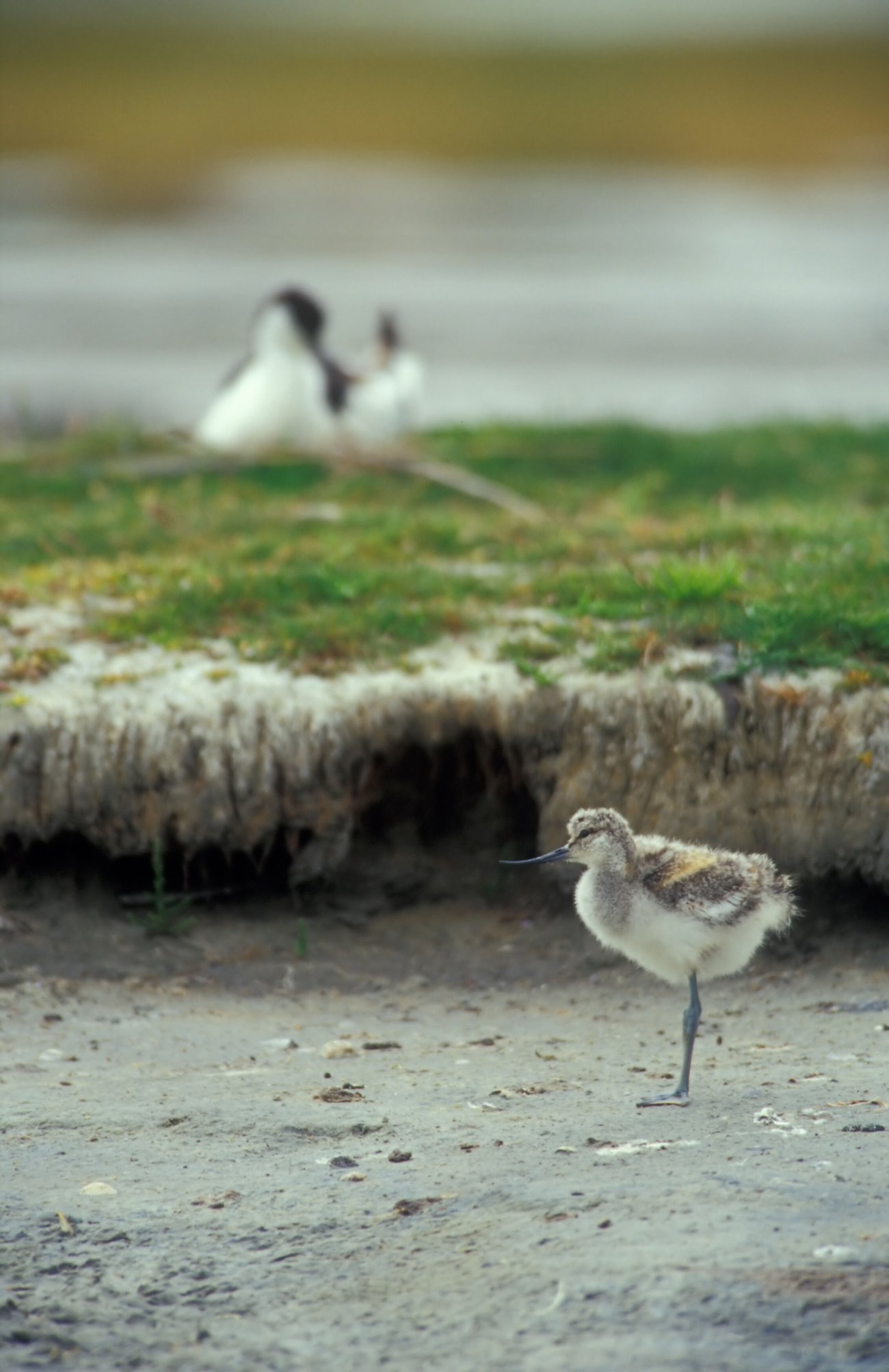 Foto jonge kluut en ouder: fotograaf N. van Kappel.